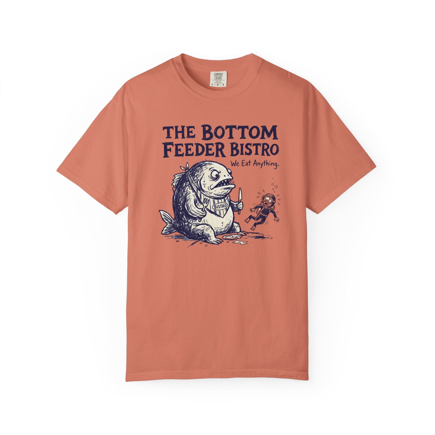Every marina has its regulars, and this is their shirt. The garment-dyed Bottom Feeder Bistro tee features an ink-style fish character with playful lettering — a tongue-in-cheek nod to anglers, boat crews, and pier locals who appreciate a good inside joke and a cold drink at the end of the day.