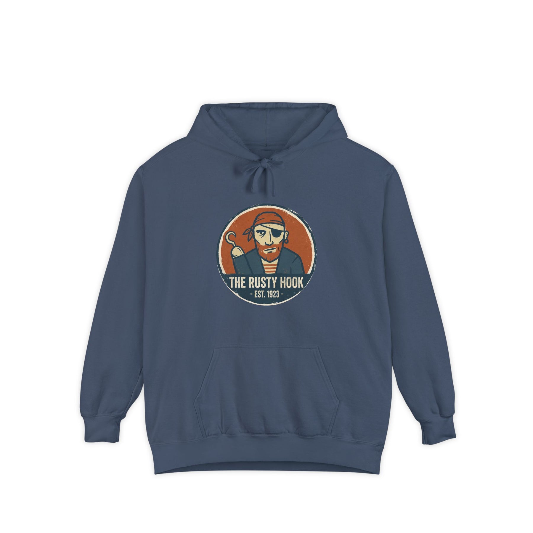 Distillery Logo Garment-Dyed Hoodie — Denim — Weathered Pine Background