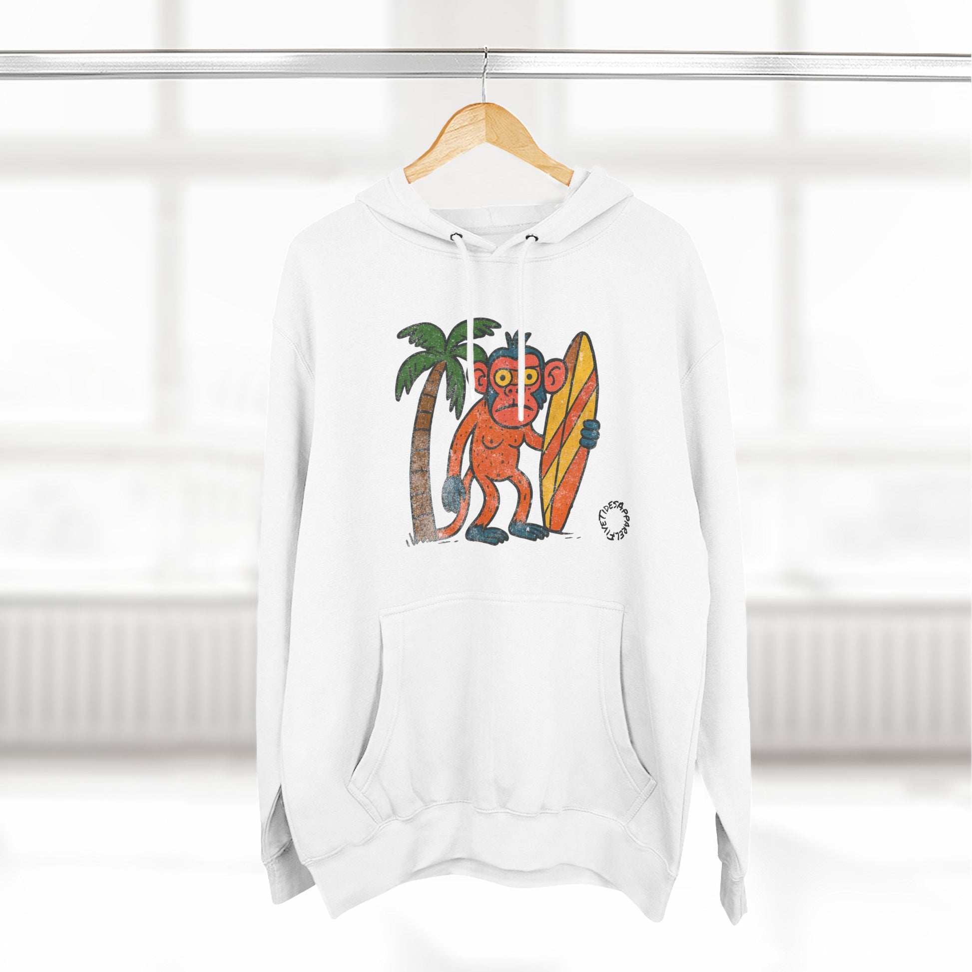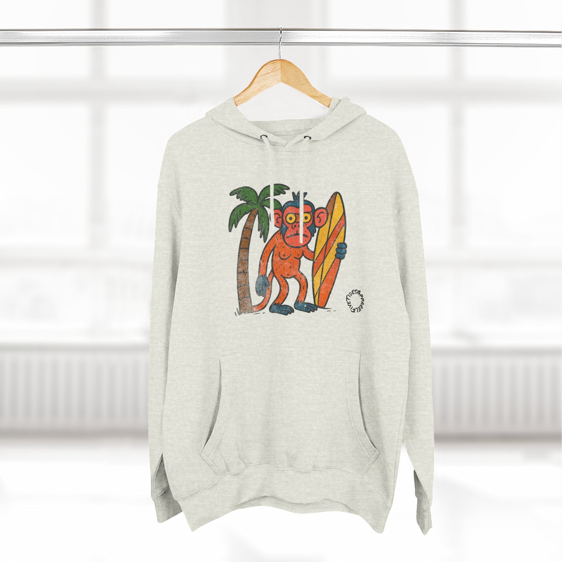 Beach Surfing Monkey Hoodie — Retro Beach Palm Tree Surfboard Graphic