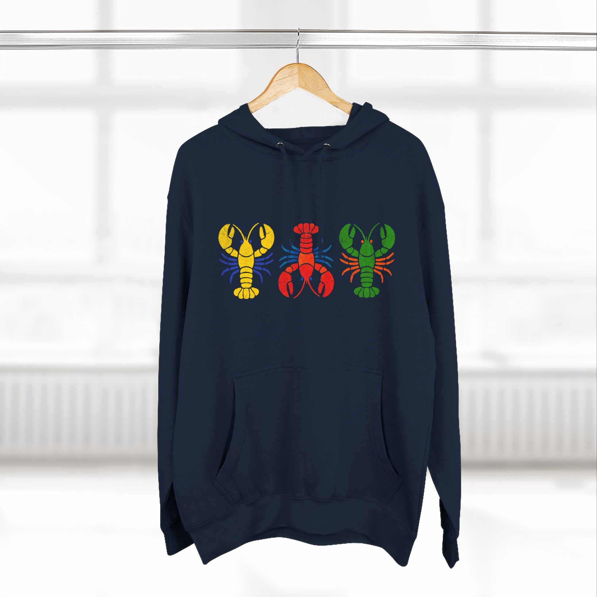 Atlantic Lobster Trio Graphic Hoodie — Colorful Beach Coastal Casual Pullover