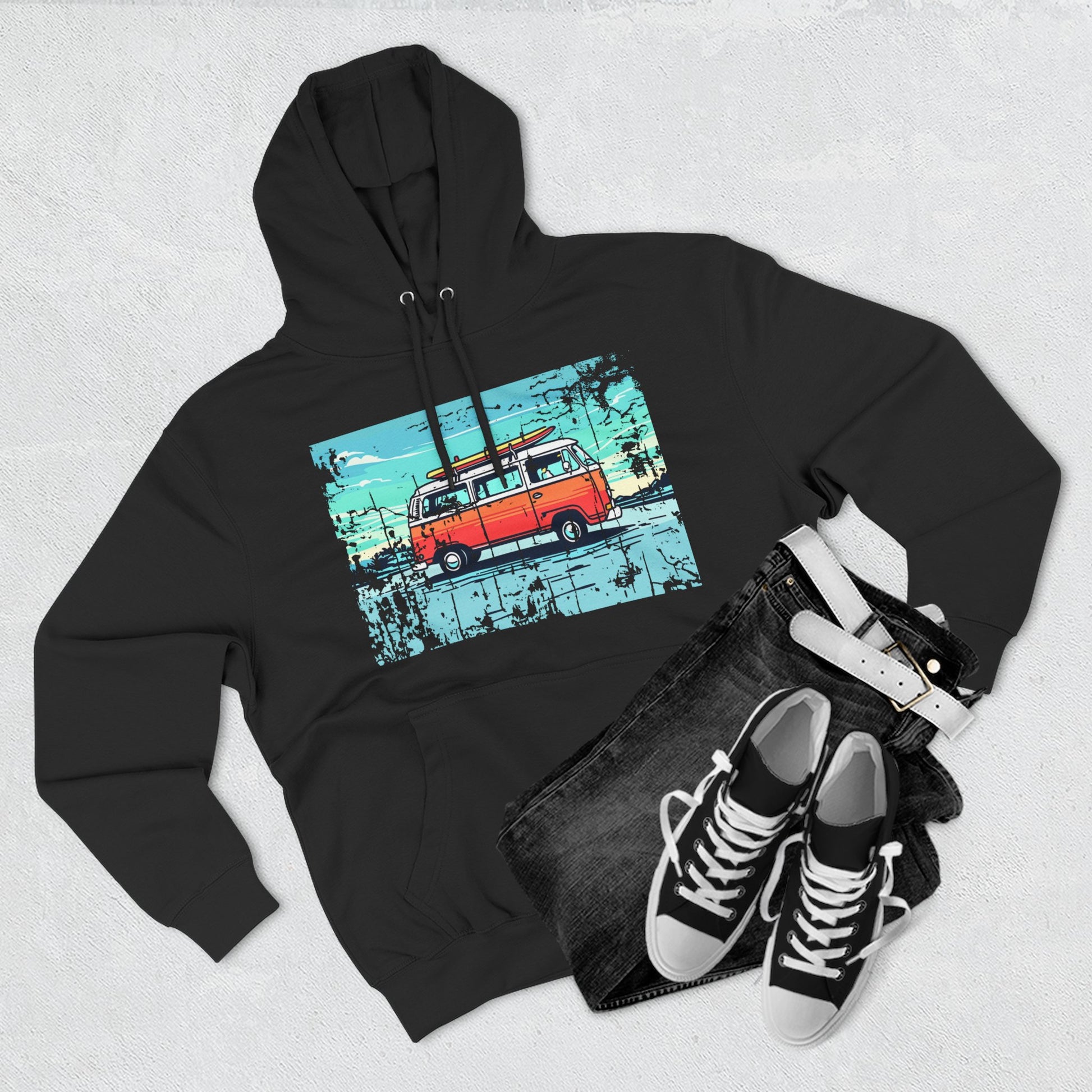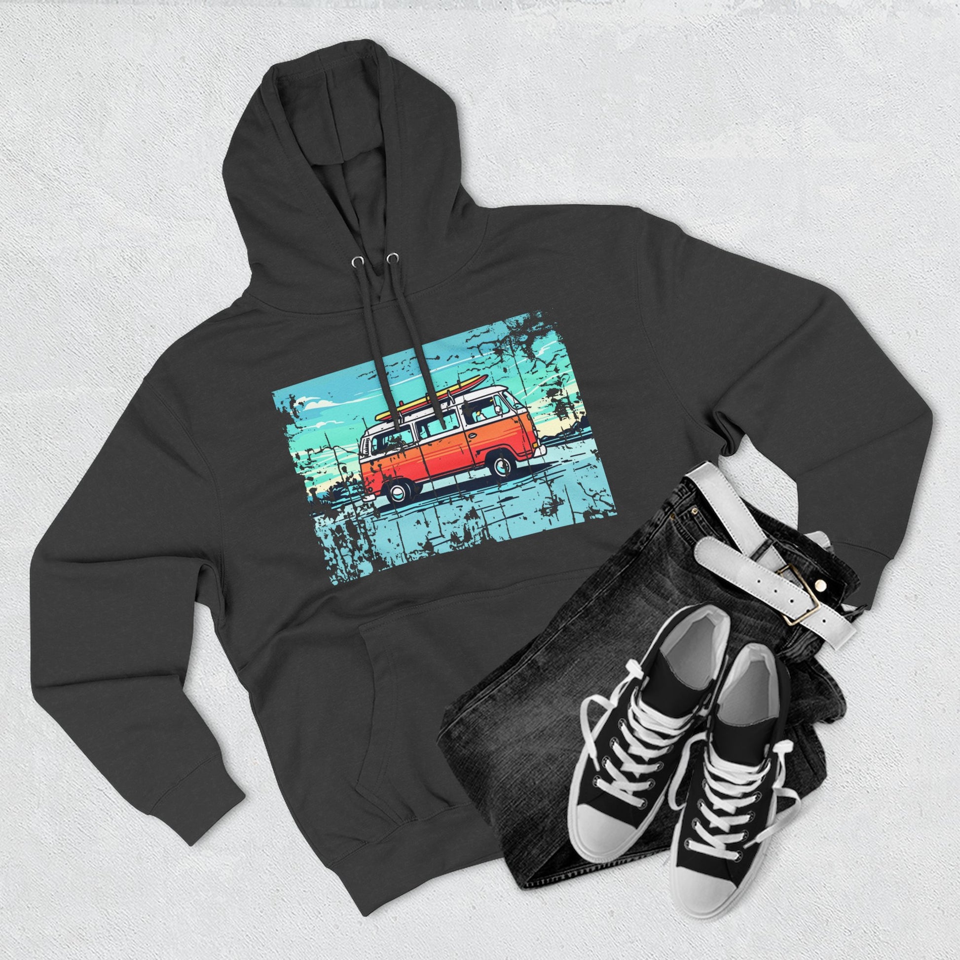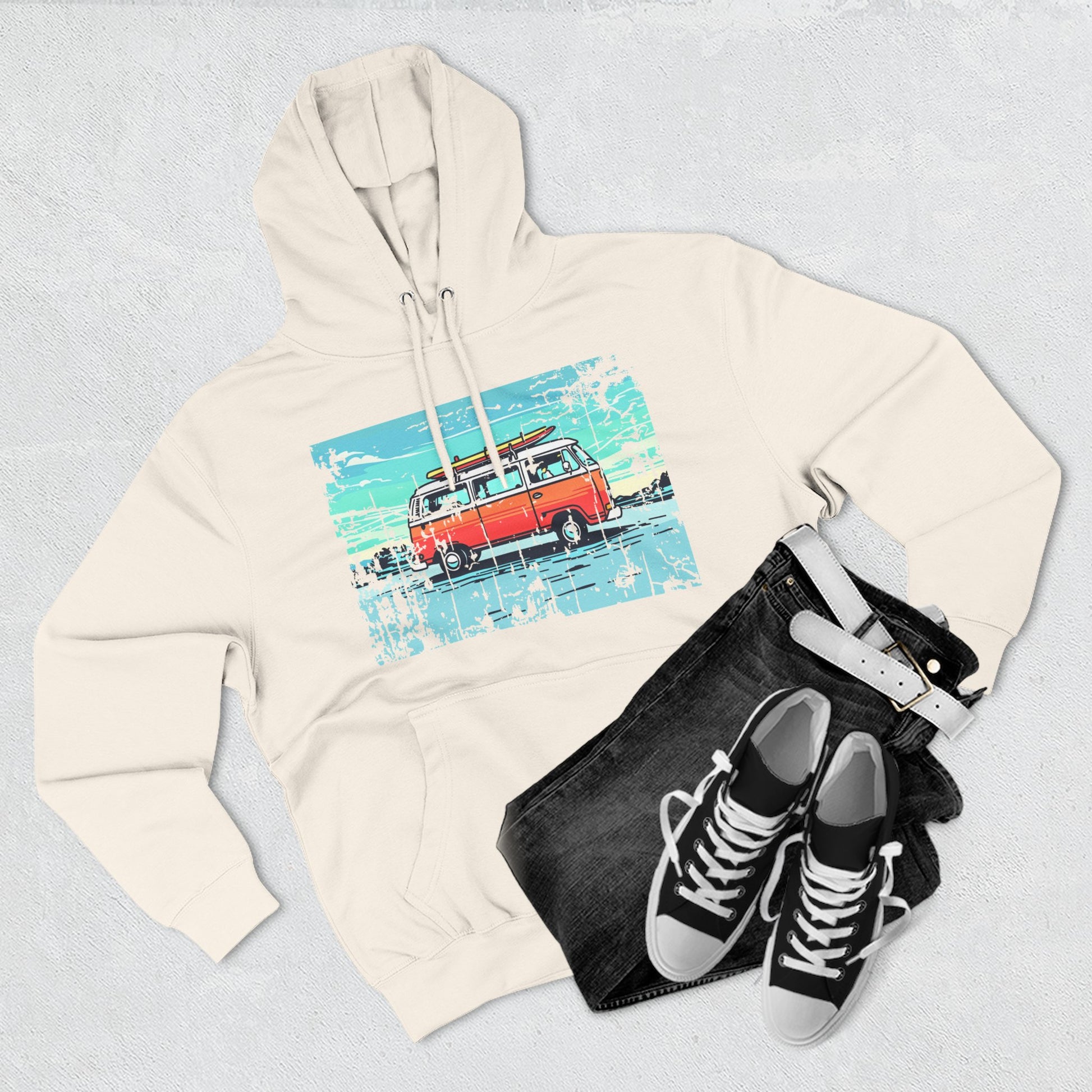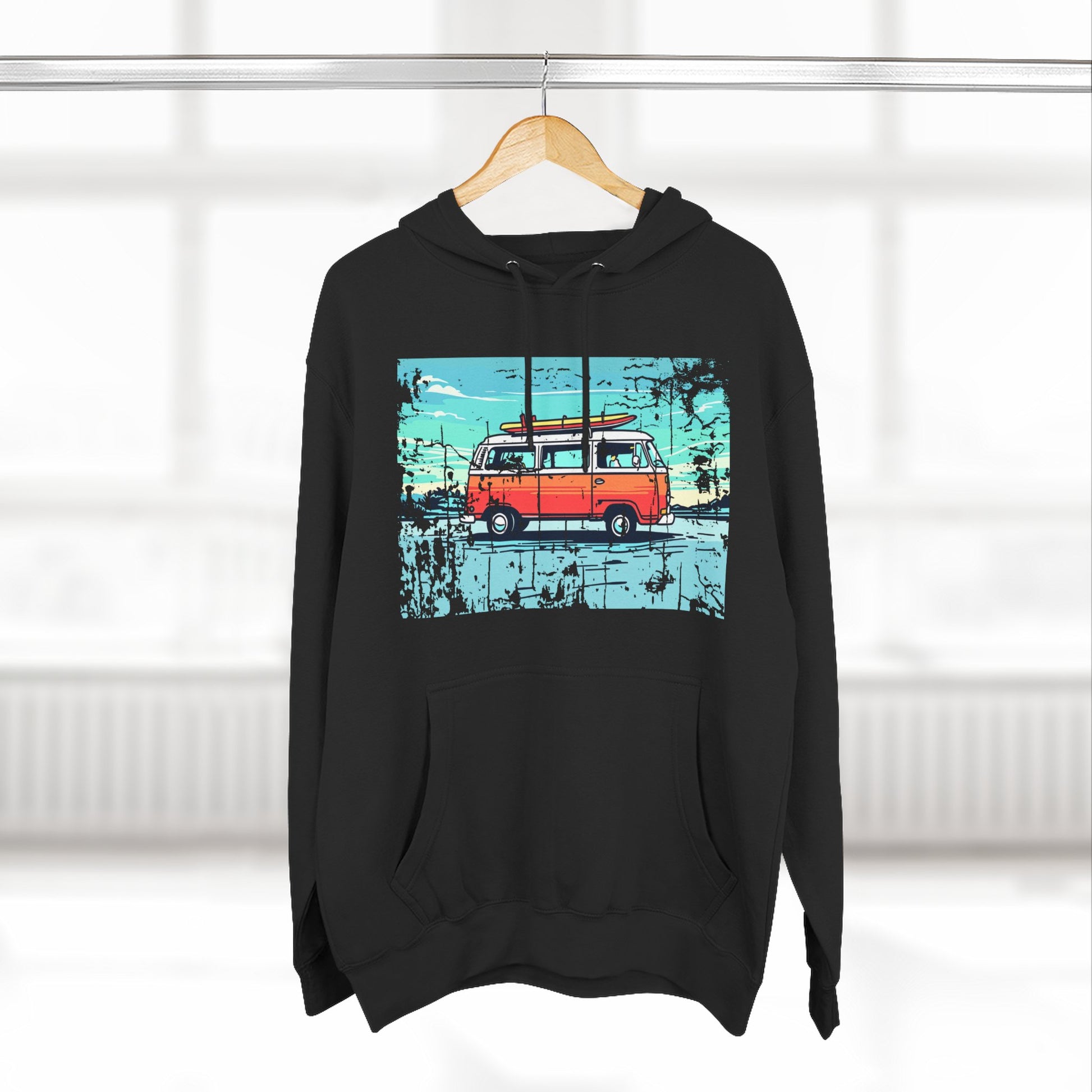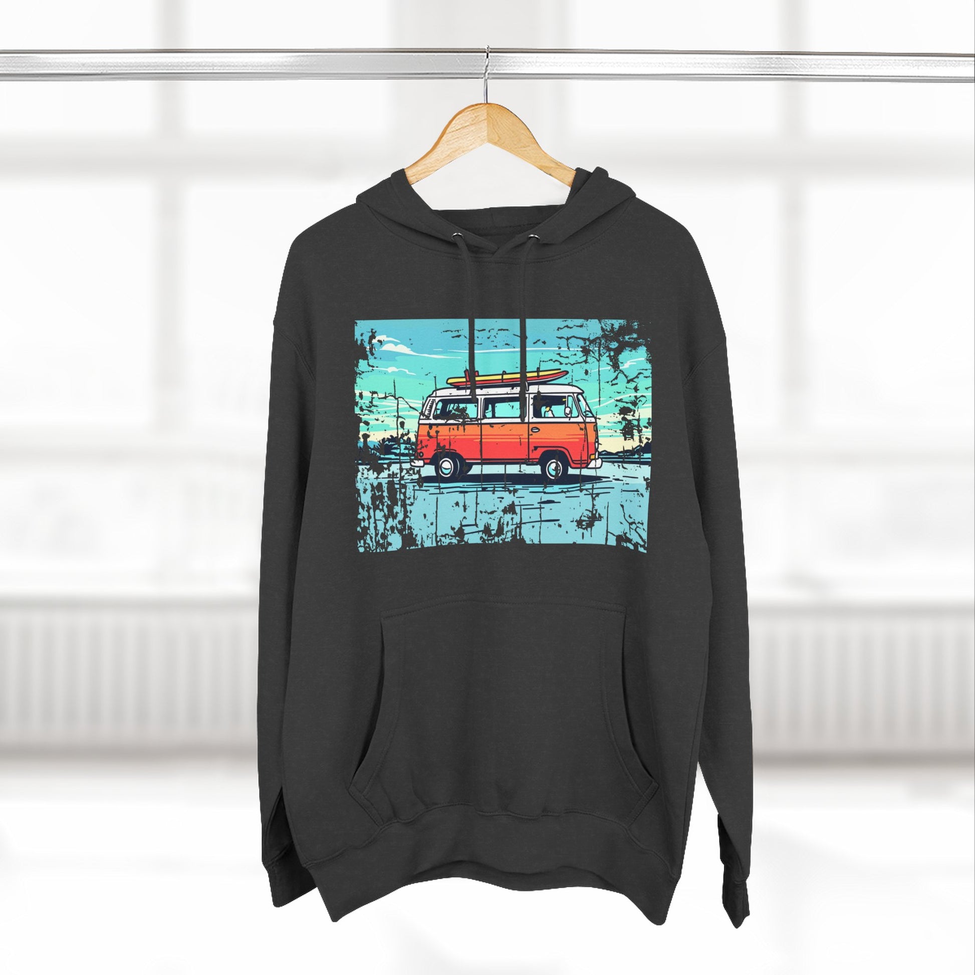 Retro Van Fleece Hoodie | Cozy Beachwear, Surf Style Gear, Road Trip Essential, Gift for Adventurers, Casual Wear