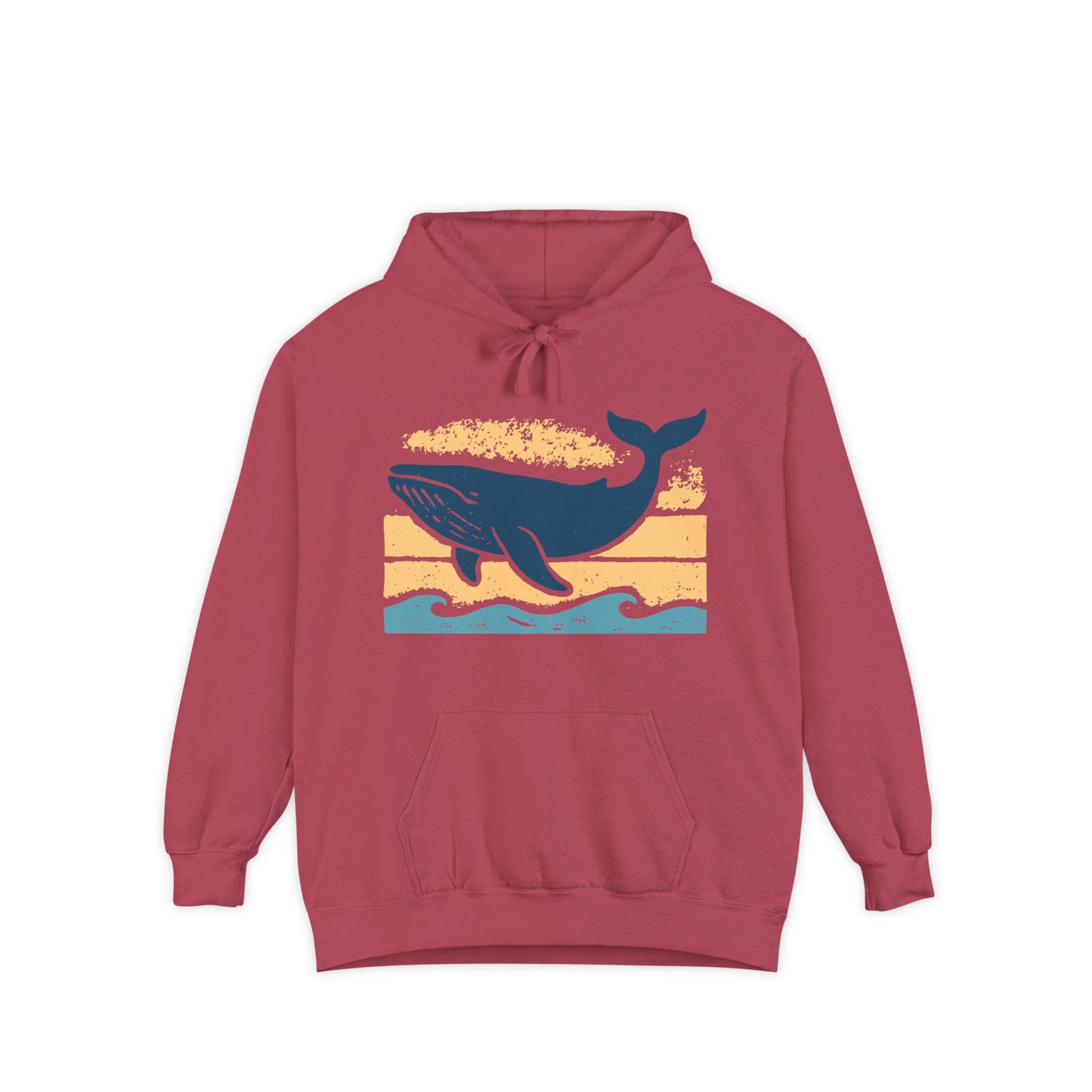 Whale Art Unisex Garment-Dyed Hoodie - Ocean Lover Gift, Beach Hoodie, Nature Apparel, Sustainable Fashion, Whale Illustration Clothing